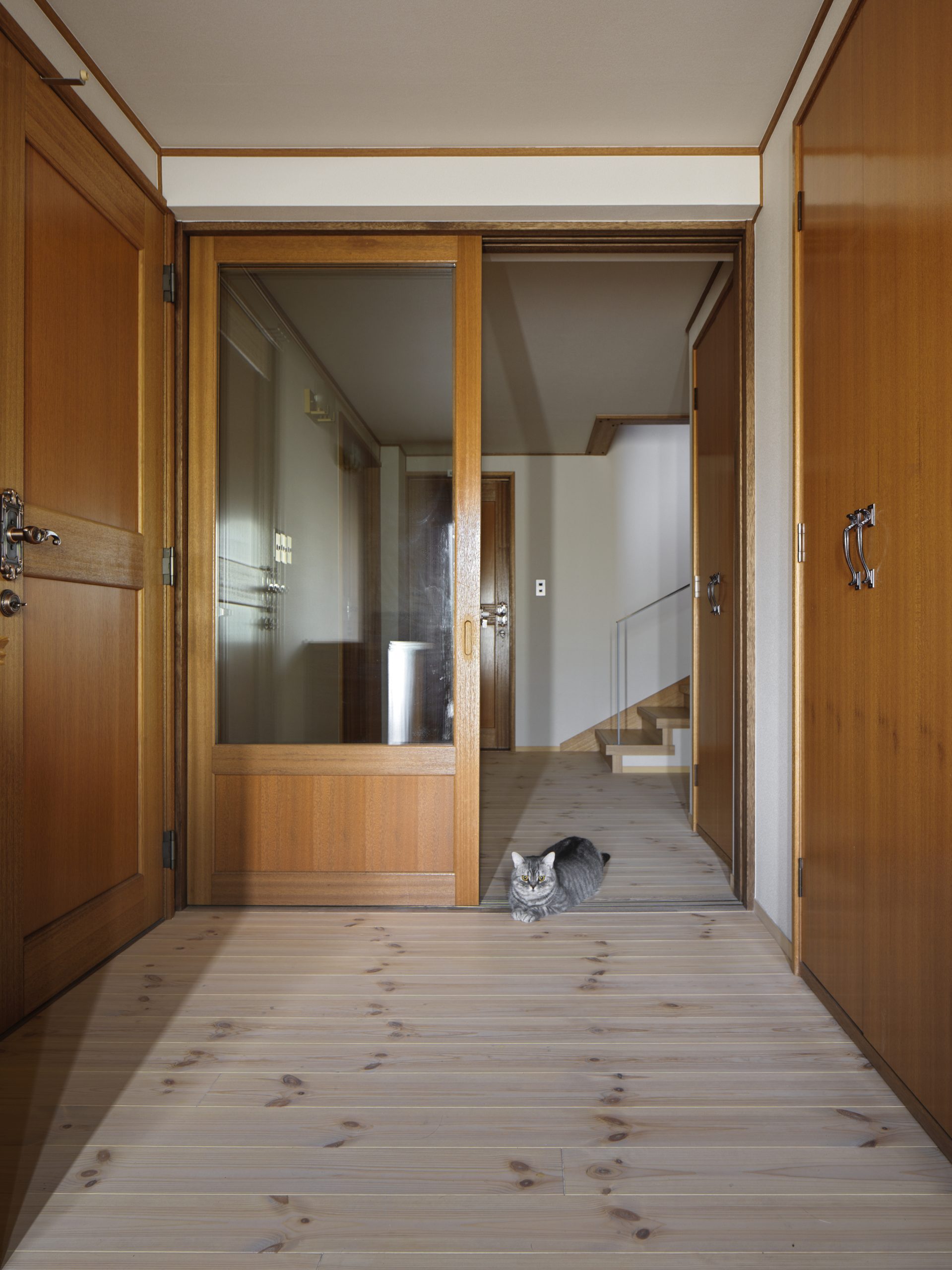 右に抜けるとキッチンに繋がるので、お買い物から帰ってきたあとの動線がすごく楽になったと、オーナーさまはおっしゃいます。