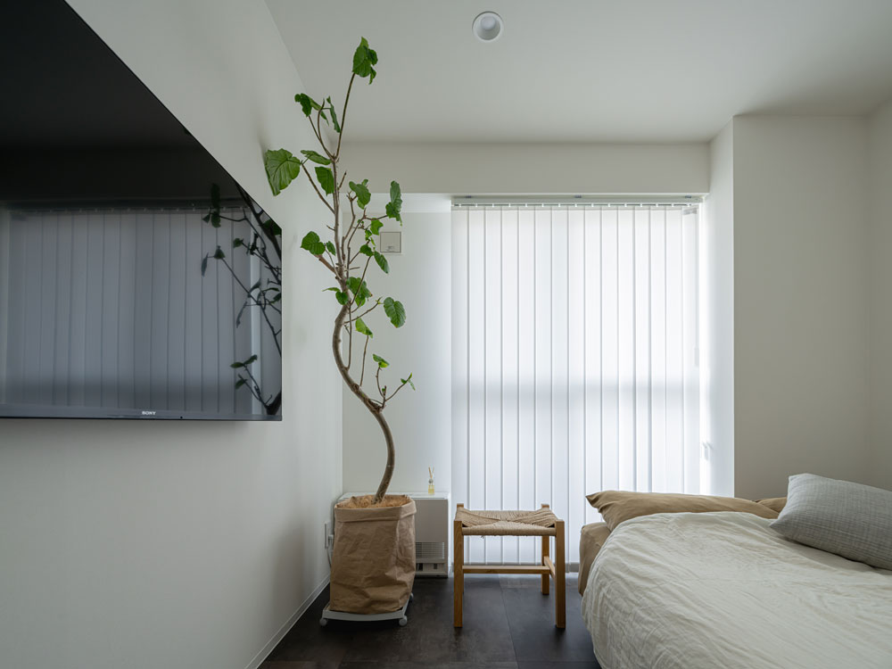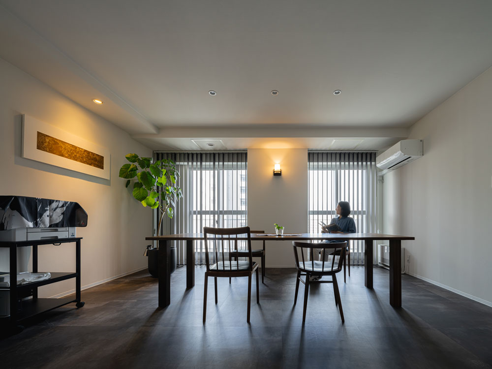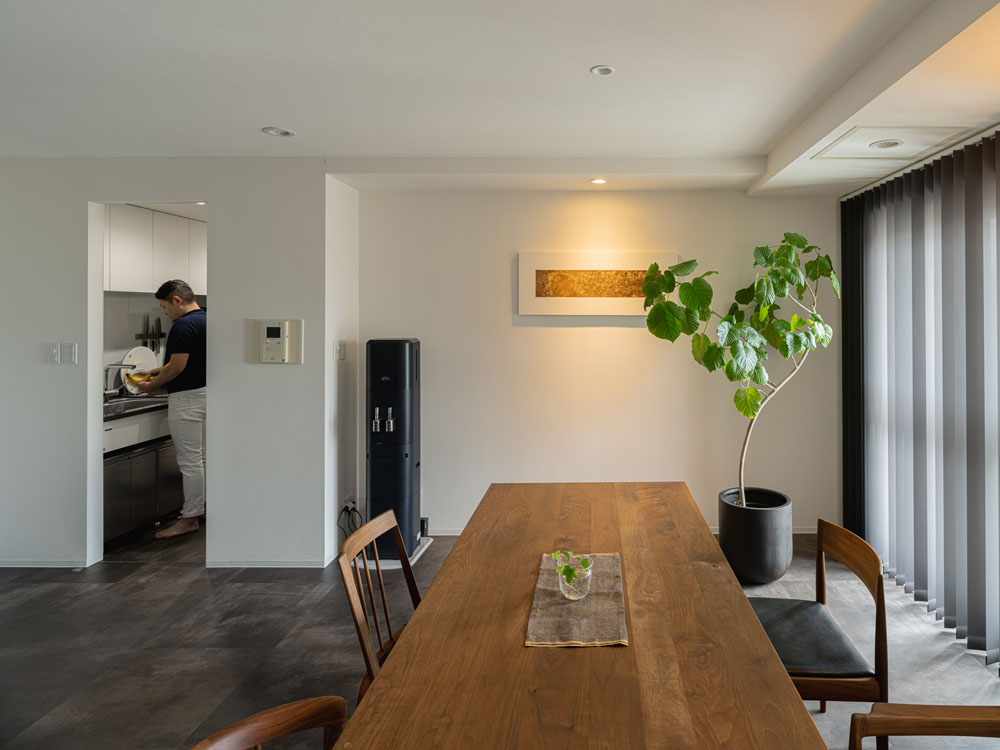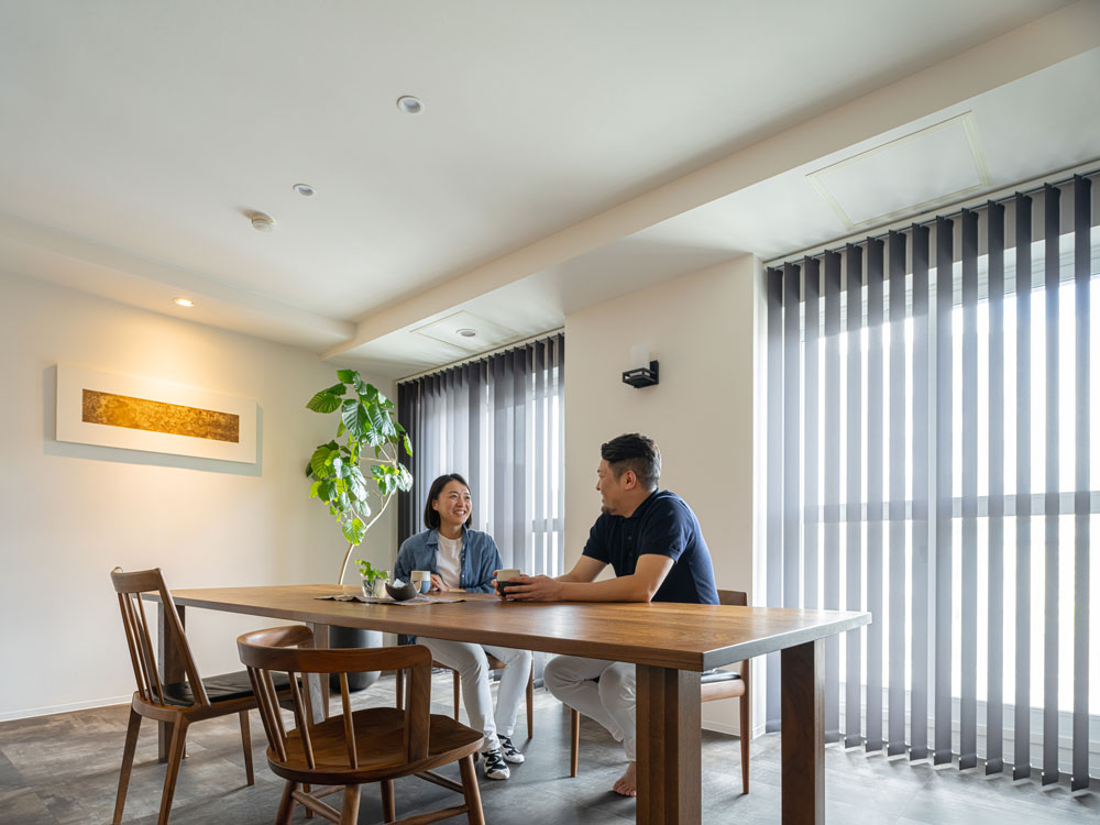 「バーチカルブラインドは憧れでもありました。白ではなくチャコールグレーを選んだことでアクセントになって満足しています。」