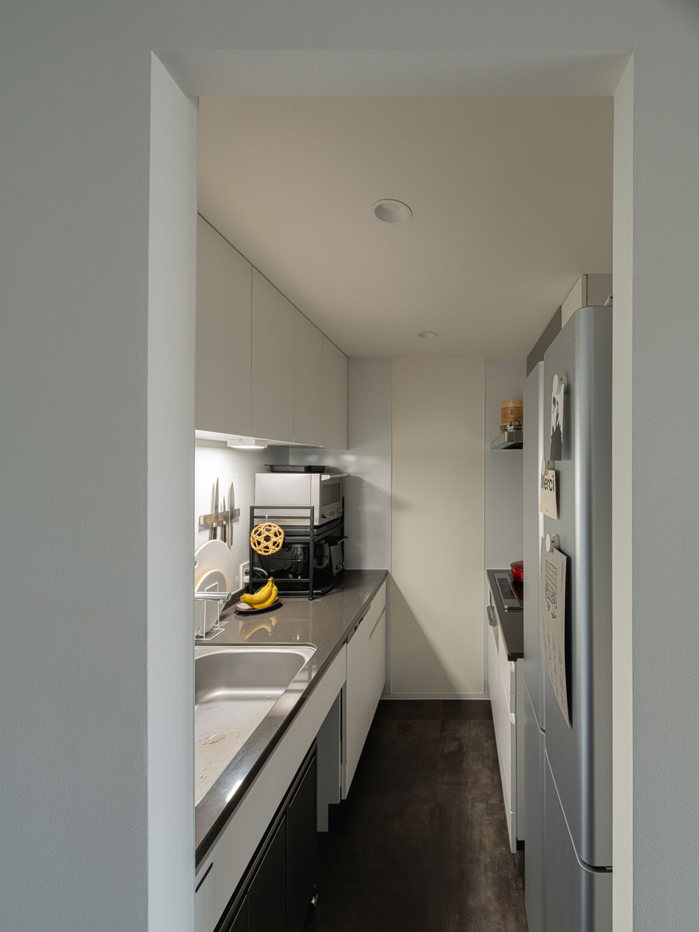 決めてからも狭さがちょっと心配だったんですが、振り返るとすぐにキッチンツールに手が届きますし、作業効率が良いので満足しています。