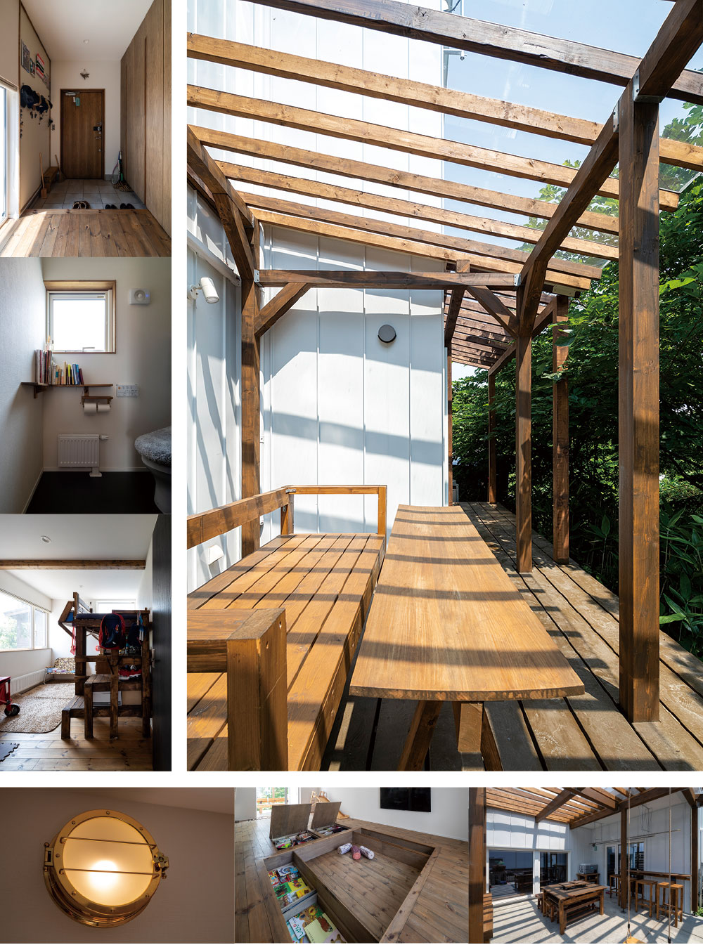 住んでみて、子供が家の中で楽しんでいることや、DIYで作ったウッドデッキで家族並んで朝食を食べたり、外でBBQをしたり、家の中と同様にアウトドアリビングも楽しんでいます!