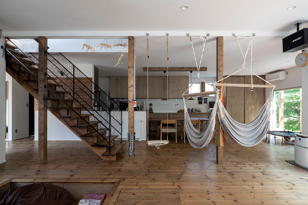 基礎の形が決まっているので、その制限の中で最大限やりたい事、子供のために考えを盛り込んだ、そんな家です。