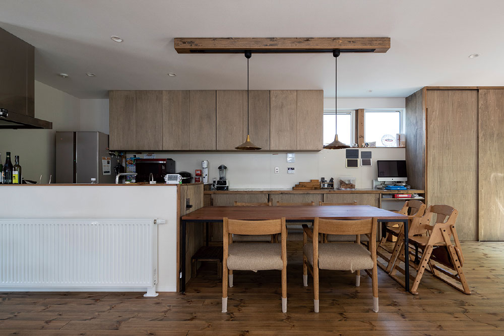 元々あるベースに合わせてさまざまなものの寸法を決めていったので、妥協したところもありますが、とにかく収納が多いので家全体でスッキリと暮らせています。