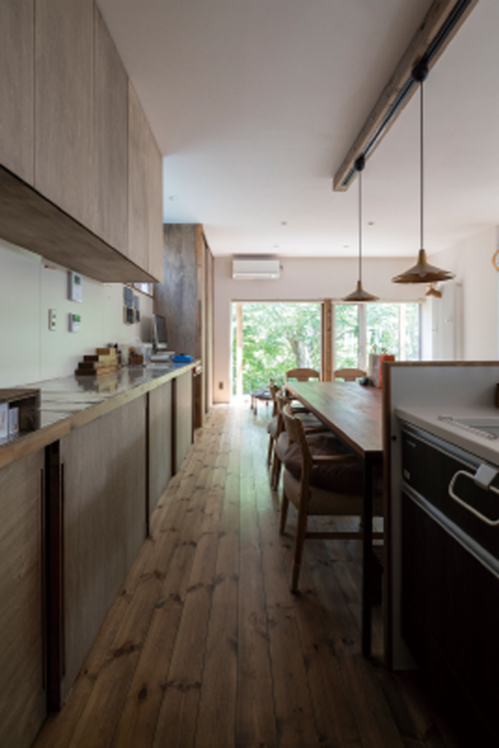陽の光をふんだんに取り入れたかったので、照明を極力抑え、大きな窓を設けました。